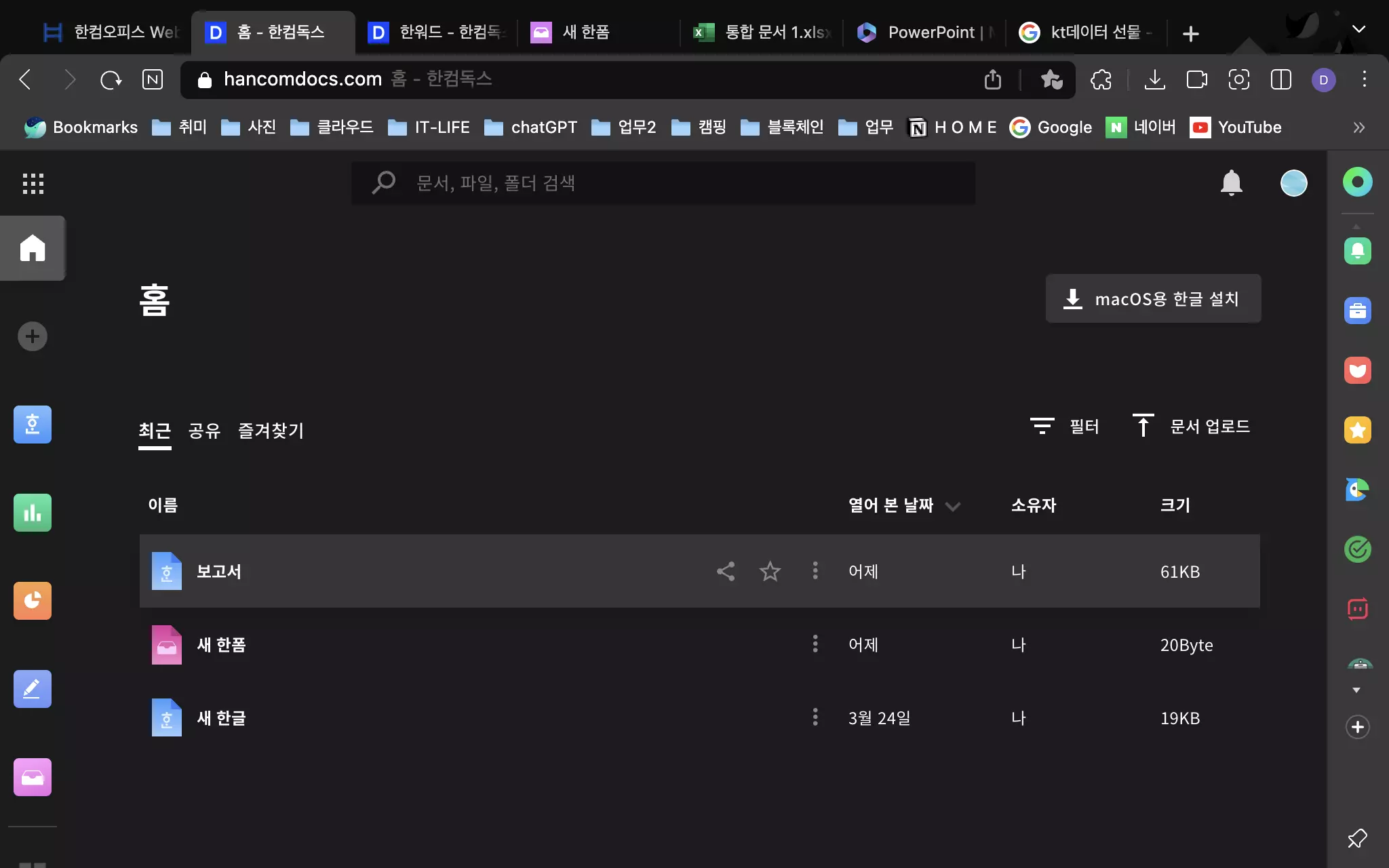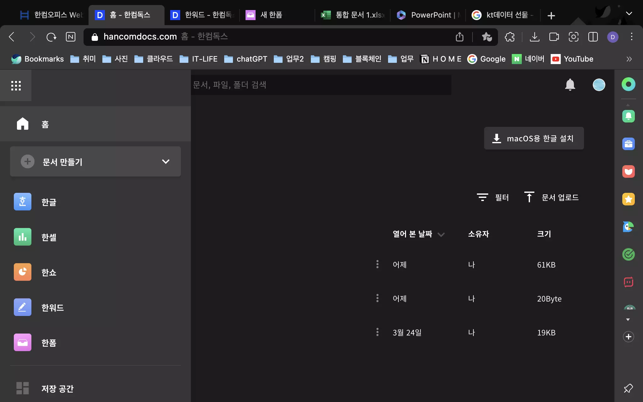 한컴오피스를 통해 한글 뿐만아니라 엑셀, 파워포인트, 워드 파일을 프로그램 설치 없이 맥에서 편집할 수 있는 방법을 알아보았습니다.
