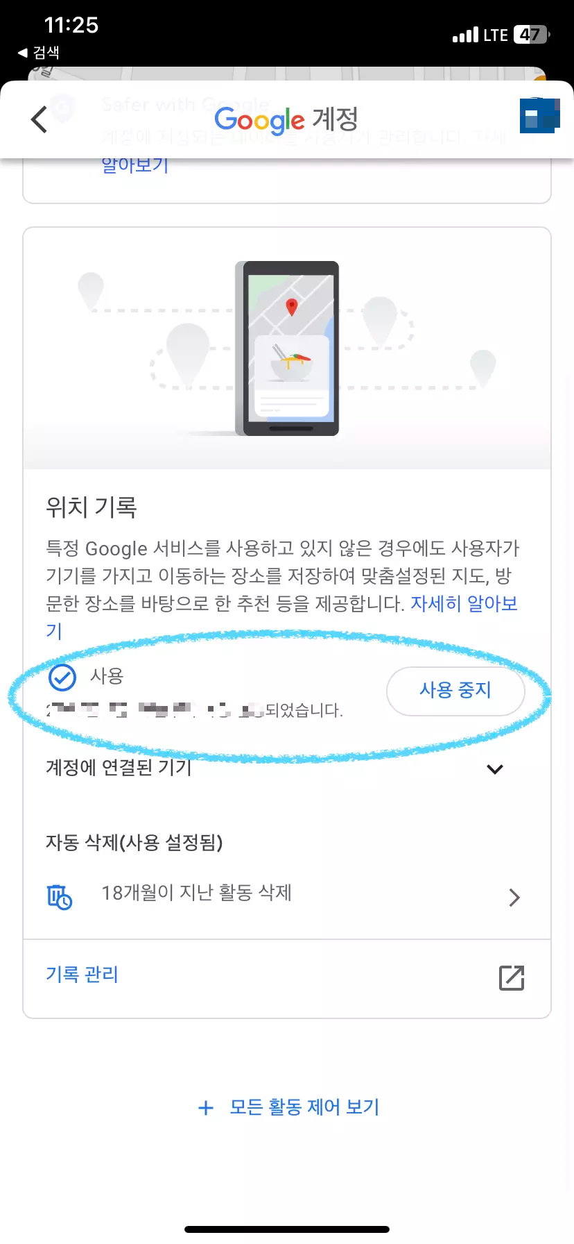 구글맵 위치기록 설정으로 타임라인 활성화